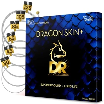 DRAGON SKIN+ Coated Quantum Nickel Bass Strings DBQ6 30 Superior Sound with Comfortable Feel & Long Life: 6 String Medium 125