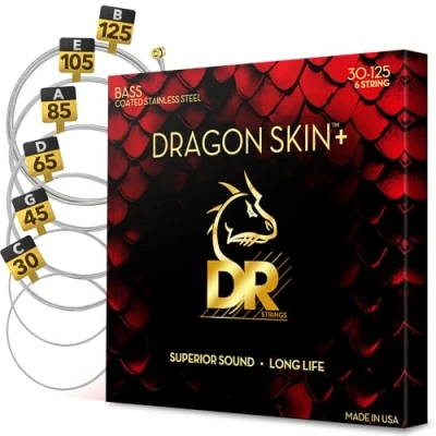 DRAGON SKIN+ Coated Stainless Steel Bass Strings DBS6 30 Superior Sound with Comfortable Feel & Long Life: 6 String Medium 125