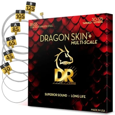 DRAGON SKIN+ Coated Stainless Steel Bass Strings DBSM6 30 Superior Sound with Comfortable Feel & Long Life: 6 String Multi Scale Medium 125