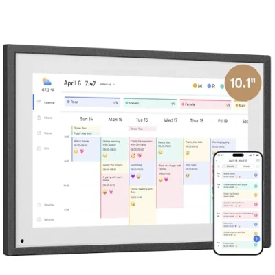Family Planner: This all-in-one Dragon Touch digital calendar can record your family members' travel and appointment arrangements, especially suitable for use in busier families, You can also record a chore chart and then complete it with your child to foster a sense of responsibility, Alternatively you can plan a weeks worth of meal plans ahead of time, including daily to-do lists that can be recorded in an electronic calendar High-resolution Multifunctional Calendar: The resolution of this Dragon Touch calendar is 1920x1080P, The screen size is 10.1 inches, the use of the process will be more rich in detail, the picture is sharp, the PPI (pixel density) moderate, no obvious graininess, comfortable to watch.CPU for the A63 Quad-core 64-bit ARM Cortex-A75, 2.3GHz RAM 2GB, storage memory dimension 32GB. Usage Step: Simply plug in, connect to Wi-Fi and link your wall planner calendar to the mobile app. Once synced, it seamlessly integrates multiple personal calendars (iOS, etc.) into one unified interface.Authorizing other devices allows for greater convenience. Size Introduction: We have 4 sizes for this Dragon Touch family calendar 2025, 10“, 15”, 21“, 32”, you can choose the right size of the e-album according to your usage scenario, such as in the kitchen, living room, bedroom, etc., you can choose the right size of the e-album according to your home area Choose the right album size. Electronic Photo Frame Function: When not in use, our electronic calendar can be equivalent to the function of electronic photo frame, loop or fixed playback of your uploaded album pictures, you can buy it for your older mom or dad, upload your photos, so that parents can see the recent situation of their children. NOTE: Not Wall Mountable