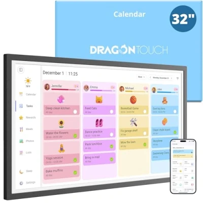 Dragon Touch Calendar,32" Digital Calendar 2025 Family Wall Planner, 1080P Full HD Interactive Touchscreen, Smart Chore Chart and Home Organization, Gift for Busy Families Scheduling Black