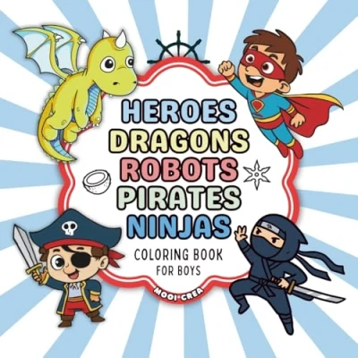 Dragons, Pirates, Ninjas, Robots and Super Heroes: Big Book of Colouring for Boys, Fantasy Coloring Kids Ages 4 10 (Bold Easy Book)
