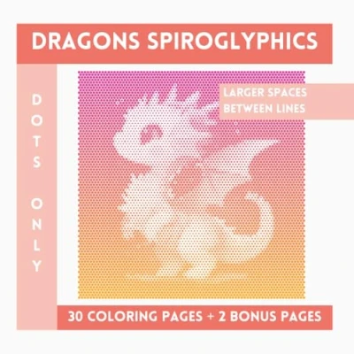 Dragons Spiroglyphics Dots Only: One Color Coloring Book With Unique Ilustraions To Discover