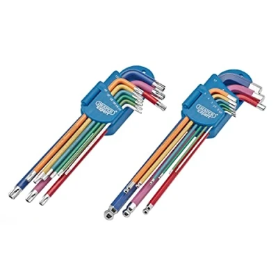 AmazonColour-coded for easy recognition Manufactured from chrome vanadium steel, which is correctly hardened and tempered Supplied inside fold-out easy release holder Contents include 9 x Hex keys: 1.5 - 10mm and 9 x Draper TX-STAR keys: T10 -T50 Draper lifetime warranty, Weight: 1.52559885304 pounds, Manufacturer: Draper