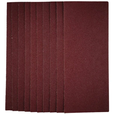 Electrical WorldThis pack of 1/2 sanding sheets (115 x 280mm) are made from premium quality aluminium oxide that is resin bonded to provide improved grain adhesion, anti-static qualities and long-lasting performance. The sheets are pre-cut to fit 1/2 sanders with clamping function (115 x 230mm). The heavy-duty E-Weight backing paper makes the sanding sheet more durable – able to withstand the toughest jobs. Ideal for sanding and finishing wood, metal, aluminium alloy, painted surfaces, plastic and fillers. Compatible with most 1/2 sanders including Stock No. 57941.