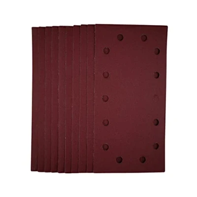 Electrical WorldThis pack of 1/2 sanding sheets (115 x 230mm) are made from premium quality aluminium oxide that is resin bonded to provide improved grain adhesion, anti-static qualities and long-lasting performance. The heavy-duty E-Weight backing paper makes the sanding sheet more durable - able to withstand the toughest jobs. The hook and loop backing offers decent adhesion to facilitate the fast changing of sanding sheets. The 14 pre-punched 8mm holes improve dust extraction. Ideal for sanding and finishing wood, metal, aluminium alloy, painted surfaces, plastic and fillers. Compatible with most 1/2 sanders with hook and loop including Stock No. 57941.