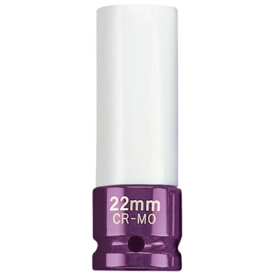 General description Expert Quality, 6 point Draper Expert HI-TORQ® socket designed specifically for alloy wheels. Manufactured from durable chrome molybdenum for enhanced strength and longevity. Features a nylon sleeve both internally and externally to prevent damage to wheels and nuts during use. Display packed for convenient storage and presentation. Technical specifications Size: 22mm Drive: 1/2 inch Square Drive
