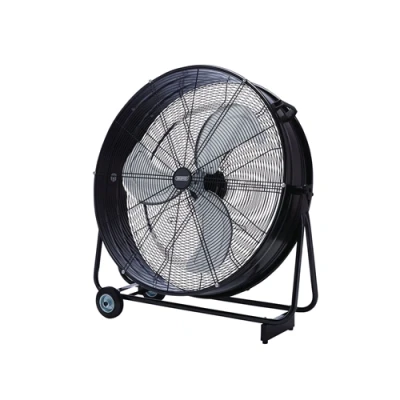 General description This high-velocity 30-inch drum fan is designed for use in industrial, commercial, and leisure environments. It features three adjustable speed settings and a tilt function to direct airflow effectively. The fan is built with a durable all-metal construction and powered by a full copper motor for reliable performance. Its handle and large rubber wheels make it easy to move and position as needed. Technical specifications Voltage: 110V Frequency: 50Hz Power: approximately 124-125W Number of speeds: 3 (low, medium, high) Dimensions: W 91 x H 91 x D 32 cm Cable length: 1.5 meters Weight: around 14.8 kg Compatibility and accessories Suitable for industrial, commercial, and leisure spaces No additional accessories included Installation Designed for easy placement; no complex installation required Ensure the fan is placed on a stable, flat surface Usage Turn on the fan and select the desired speed setting Use the tilt function to direct airflow as needed Move the fan