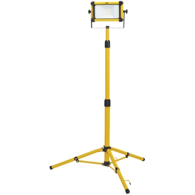 ManoManoGeneral description This versatile LED work light features a telescopic tripod that extends up to 1.3 meters, providing adjustable height for optimal illumination. It delivers a bright, even light with a beam angle of 100 degrees and a color temperature ranging from 6,000 to 6,500K, offering cool white to daylight illumination that reduces shadows. Made from durable cast aluminum and toughened glass, the light is designed for industrial use and offers robust protection with bumpers. It is suitable for various DIY and home improvement tasks, providing reliable and efficient lighting in different environments. Technical specifications Wattage: 20W Brightness: 2,200 lumens Dimensions: approximately 250mm (W) x 700mm (H) x 150mm (D) Lens size: approximately 98mm x 144.8mm Beam angle: 100° Color temperature: 6,000-6,500K Weight: about 4.5kg Compatibility and accessories Compatible with standard power outlets using the included 3-meter VDE cable and approved plug Installation The tripod is