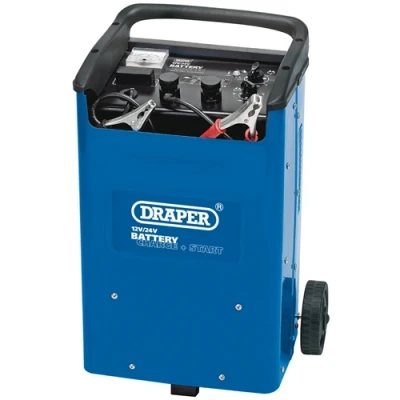 Electrical WorldFor garage and workshop use. With trolley wheels for easy movement around the workshop or yard. The starter/charger has thermal overload protection, battery timer, easy - to - read ammeter, polarity inversion and transport handle. Insulated copper leads. Carton packed.