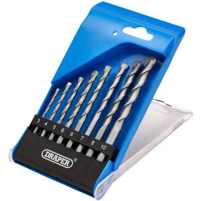 The Draper Masonry Series drill bits are heavy-duty and precise. Made from an alloy-steel with a professionally ground tungsten carbide tip for a faster cut and longer service life. The precision ground flutes with 135 tip angle ensures efficiency when drilling into dense building materials. Suitable for use with concrete, brick, stone, slate and all masonry. Compatible with a standard 10/13mm chuck. Heavy-duty and precise, made from an alloy-steel Professionally ground tungsten carbide tip for a faster cut Precision ground flutes with 135° tip angle Suitable for use with concrete, brick, stone, slate and all masonry Compatible with a standard 10/13mm chuck Drill tip angle: 135 Tip material: TCT YG8 Flute: Single Connection: Round shank Construction: Milled and braised