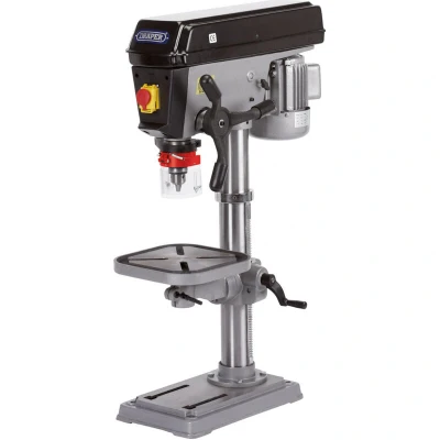 Electrical WorldHeavy duty 16 speed bench drill with a 19mm drilling capacity. Designed for engineering and fabrication workshops. The square table is fitted with a heavy duty smoothly operated rack and pinion for easy adjustment. Fitted with a No - Volt safety release switch, depth stop and chuck guard. Manufactured with an Aluminium motor casing and lockable pulley cover. Supplied with a BS approved non - rewireable moulded plug and 1.8m (approx.) cable.