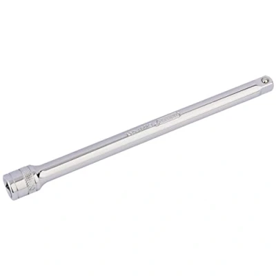 General description This 3/8-inch drive extension bar is made from high-quality chrome vanadium steel, which is hardened and tempered for durability and strength. It features a polished chrome finish for corrosion resistance and a professional appearance. The extension bar includes a knurled ring for a secure grip and a spring-loaded ball bearing to ensure a secure connection with sockets. It is designed to extend the reach of your socket wrench, making it easier to access hard-to-reach fasteners. Technical specifications Material: Chrome vanadium steel Finish: Polished chrome Length: 200mm Drive size: 3/8 inch Manufactured and tested according to DIN3122 and ISO3315 standards Compatibility and accessories Compatible with 3/8-inch drive sockets and ratchets Suitable for use with a variety of socket sets and extensions Installation Insert the extension bar into your socket or ratchet drive until it clicks into place, secured by the spring-loaded ball bearing. Usage Use to extend the