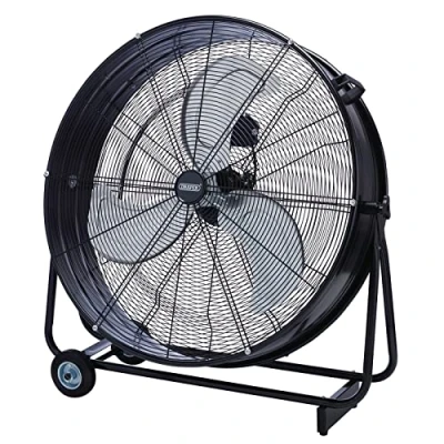 Electrical WorldThis high-velocity 30" diameter drum fan is suitable for use in industrial, commercial and leisure space environments. The fan has three speed settings and a tilt function to direct airflow. It has a heavy-duty all-metal construction and a 125W full copper motor, as well as a handle and large rubber wheels for easy manoeuvrability.