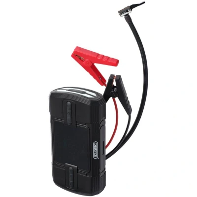 Draper 23722 12V Lithium Jump Starter and Tyre Inflator, 1200A, Black