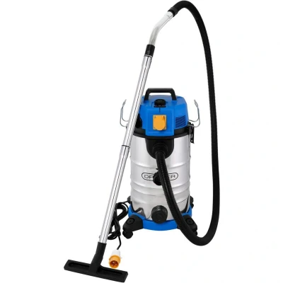 This wet and dry vacuum cleaner is designed to meet with the M-class standard and effectively removes 99.9% of medium hazardous dust removal, in accordance with HSE recommendations. It features a 110V power take-off socket (max. 660W) for automatic dust extraction during sanding and drilling. The 1100W motor provides 210W of air watts for strong suction performance. To maintain optimal suction, the vacuum includes a filter cleaning system that prevents clogs and removes trapped debris, extending the lifespan of the vacuum. The anti-static hose is designed to prevent the build-up of static electricity and blockages caused by ultra-fine particles. An LED indicator alerts when airflow drops below 20m/s. The adjustable motor speed allows for enhanced suction control, which can be lowered for delicate surfaces or increased for more challenging tasks. The sealing cap effectively blocks hazardous dust from entering or escaping when the vacuum is turned off or being moved. A wide range of