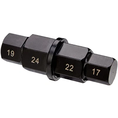 Hexagon sizes on tool: 17mm x 19mm x 22mm x 24mm Internal 3/8" square drive in the 19mm hex end Easy to Use