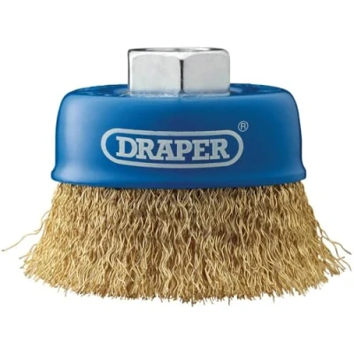 Wire Cup Brushes This wire cup brush is designed for light to medium-duty work and delivers rapid stock removal from a wide variety of surfaces. The bristles are made from hardened dipped brassed steel wire, which gives a high level of durability and resistance to oxidation. The brush is strong enough to provide reliable performance, and the crimping is flexible to tackle recessed areas and irregular surfaces. The cup shape works flat to the surface to cover a large surface area. Compatible with most angle Conforms to EN1083-1 and EN1083-2, Weight: 0.4850169764 Pounds, Manufacturer: Draper