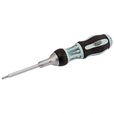 Screwdriver set with forward and reverse ratcheting action Manufactured with soft grip two-tone handles for user comfort The bits can also be used in power drivers Expert Quality 7 piece screwdriver and bit set. Fitted with an easy to operate forward and reverse mechanism. Supplied with extra long 89mm bits, made from hardened and tempered chrome vanadium steel. The tips on each screwdriver bit have been sand blasted, providing greater grip when engaged with the screw head. Contents: Ratchet screwdriver, 6 Draper TX Star bits T10, T15, T20, T25, T30 and T40, Weight: 0.661386786 Pounds, Manufacturer: Draper