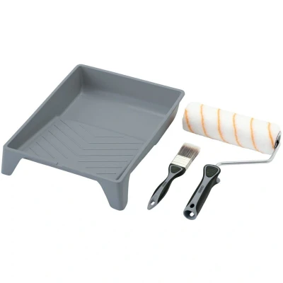 General description This medium pile polyester paint roller and brush set is ideal for painting emulsion on lightly textured or semi-smooth surfaces. It includes a 9-inch roller with an ergonomic soft grip handle for comfortable use, and a 40mm paint brush with a stainless steel ferrule and 100% solid round tapered polyester filaments. The set provides even coverage with minimal splatter, making it suitable for various decorating projects. Technical specifications Roller size: 9 inches Material: Woven polyester sleeve Brush size: 40mm Handle: Soft grip ergonomic handle Ferrule: Stainless steel Filaments: 100% solid round tapered polyester Compatibility and accessories Suitable for emulsion paints and similar coatings Can be used with paint trays included in the set Installation Attach the roller cover securely onto the roller frame Dip the roller or brush into paint, removing excess before application Usage Apply paint evenly on walls or ceilings using the roller for large surfaces