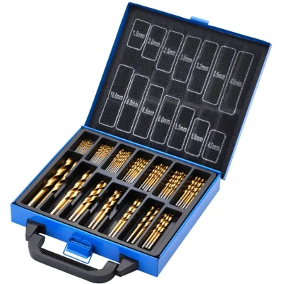 General description This set includes 99 high-speed steel drill bits coated with titanium nitride for increased durability and performance. The bits are fully ground with a 135° split point for precise centering and to prevent wandering during drilling. Suitable for various materials including steel, non-ferrous metals, wood, and hard plastics. The set is supplied in a sturdy plastic case for easy storage and organization. Technical specifications Type: HSS (High-Speed Steel) Coating: Titanium Nitride Tip angle: 135° split point Flute: Single Connection: Round shank Sizes: 1.5mm to 10.0mm (various quantities per size) Manufactured according to DIN338 and DIN1414-2 standards Compatibility and accessories Compatible with standard 10mm and 13mm chucks Works well with cooling agents to extend tool life Installation Insert the desired drill bit into a compatible drill chuck Ensure the drill is set to the appropriate speed for the material Securely tighten the chuck before use Usage Use