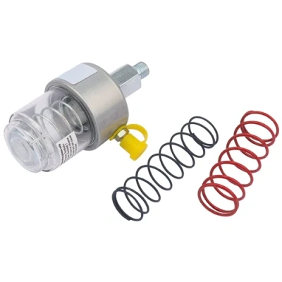Expert Quality, 1/8" BSPT thread automatic grease feeder used for applying the optimum amount of grease at a constant discharge of 1 - 2 PSI. The transparent polycarbonate body offers easy refilling, which is achieved by using a standard grease gun. Suitable for use with NLGI 0 to NLGI 4 specification grease, within an operating temperature range of - 23 deg C to 121 deg C (- 10 to +250 deg F). Designed for use on machinery with excessive vibration or shock loadings or in hazardous areas. Able to be mounted in any position, including horizontal, vertical or upside down ensuring constant application lubrication. Supplied with three springs for adjusting the feed rate, ideal for different viscosities and operating temperatures: BLUE - light spring, SILVER - medium spring and RED - heavy spring. Display packed