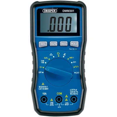AmazonAuto and manual ranging capable of voltage, current, resistance, diode and continuity testing Fitted with a backlit LCD screen Auto power off, continuity buzzer and data hold function Comes with test leads and temp probe, Weight: 1.11774366834 Pounds, Manufacturer: Draper