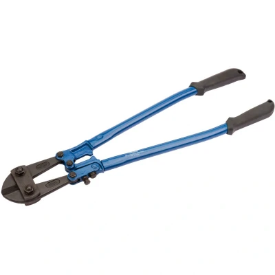 General description These 600mm bolt cutters are designed for professional and DIY use, ideal for cutting bolts, chains, rods, rivets, and other materials. The cutting jaws are hardened and tempered to a hardness of HRC58-62, ensuring durability and high cutting performance. The central blade design reduces the effort needed to cut, and the plastic-coated handles provide a comfortable grip. Technical specifications Color: Blue and black Material: Steel Total length: 600 mm Cutting capacity: 8 mm Suitable for cutting high-resistance and hard materials up to 40HRC Hardened and tempered jaws at HRC58-62 Central blade cutting model Plastic-coated handles for comfort Compatibility and accessories Designed for cutting bolts, chains, rods, rivets, and similar materials. Spare jaws available. Installation No installation required; ready to use out of the box. Usage Use the bolt cutters to cut through high-resistance materials up to 8 mm in diameter. Apply force evenly for best results. Ensure