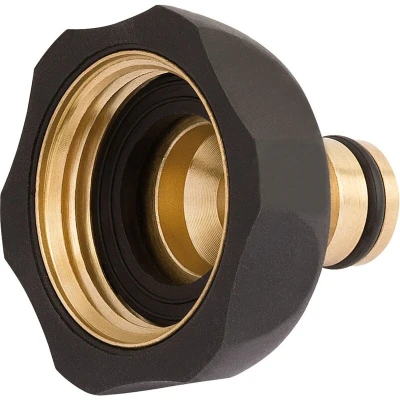 General description This brass and rubber tap connector is designed for reliable and secure hose connections. Made from high-quality brass with a rubber overmolding, it ensures durability and a tight fit for various garden and household applications. Technical specifications Material: Brass with rubber overmolding Size: 1 inch Type: Tap connector Compatibility and accessories Compatible with standard 1-inch hoses and fittings Suitable for garden hoses, irrigation systems, and other water connections Installation Simply screw the connector onto the hose or tap Ensure a tight fit to prevent leaks Usage Use to connect hoses to taps or other fittings securely Ideal for gardening, irrigation, and household water systems