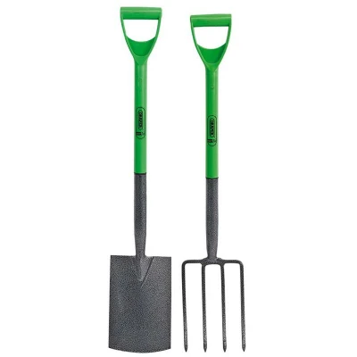 Draper Carbon Steel Garden Fork and Spade Set, Green