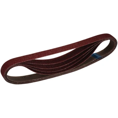 General description This high-performance sanding belt measures 25 x 762mm and features a resin-bonded aluminium oxide abrasive for efficient material removal and long-lasting durability. It is suitable for sanding and finishing various surfaces including wood, metal, aluminium alloys, painted surfaces, plastics, and fillers. The belt's open coat design helps with chip removal and heat dissipation, ensuring smooth operation. The special butt joint minimizes vibration, resulting in a more even finish. The X-weight polycotton cloth backing provides flexibility and strength, allowing use under different pressure conditions. Technical specifications Dimensions: 25 x 762mm Grit: 180 Material: Aluminium oxide Bonding: Resin bonded Backing: X-weight polycotton cloth Pack size: 5 belts Compatibility and accessories Compatible with all sanders using 25 x 762mm belts Suitable for use with various sanding machines, including models with stock number 98419 Installation Ensure the sander is turned