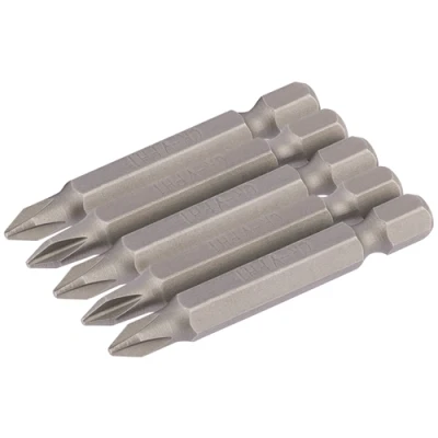 General description This is a high-quality screwdriver bit made from chrome vanadium steel, which is hardened and tempered for durability and strength. It features a shot-blasted finish for improved grip and longevity. The bit is designed for cross slot (Phillips) screws and is suitable for various DIY and home improvement tasks. It is available in sets of 1, 2, 5, or 10 pieces, making it convenient for different projects. Technical specifications Material: Chrome vanadium steel Finish: Shot blasted for enhanced durability Length: 50mm Type: Cross slot (Phillips) insert bit Size: No.1 1/4" Compatibility and accessories Compatible with standard screwdriver and drill chucks Designed to fit No.1 1/4" hex drives Installation Insert the bit into a compatible screwdriver or drill chuck Ensure it is securely fitted before use Usage Use for driving Phillips screws in various DIY, home improvement, and construction projects Suitable for use with power tools and manual screwdrivers Other