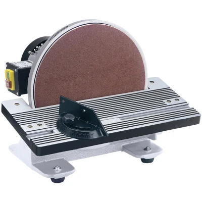 General description This disc sander is suitable for general sanding tasks in the workshop. It features a tilting table from 0 to 45 degrees for easier working angles and includes a mitre gauge for precise cuts. The dust extraction facility helps keep the workspace clean. Powered by a quiet, powerful induction motor, it provides efficient sanding performance. The sander is supplied with one 305mm 80-grit self-adhesive sanding sheet and is fitted with a cable and approved plug for safety and convenience. Technical specifications Motor power: 350W Motor type: Brushless Disc size: 305mm Sanding disc table dimensions: 438 x 156mm Table tilt range: 0-45° Disc speed: 1400 revolutions per minute Weight: 30kg Compatibility and accessories Compatible with standard 305mm sanding discs Supplied with one 80-grit self-adhesive sanding sheet Installation Fitted with a cable and approved plug for easy connection Designed for stable placement on a workbench or stand Usage Use the tilting table to
