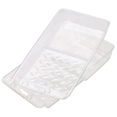 General description Pack of five disposable paint tray liners designed for use with paint rollers. Made from PVC, these trays feature dimples for even paint loading. Conveniently display packed for easy storage and access.