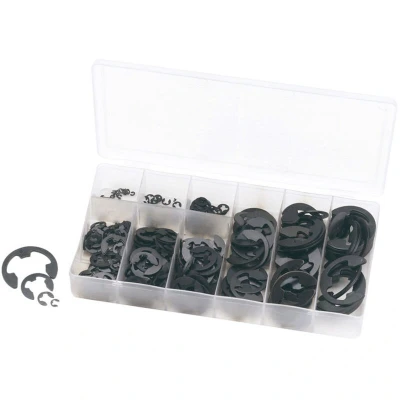 General description This product is an assortment of approximately 300 metric-sized E-Clips stored in a plastic case. It is designed to provide a wide selection of common E-Clips for various DIY and home improvement projects, making it easy to find the right size for your needs. Technical specifications Number of pieces: approximately 300 Type: E-Clips Material: Metal (typically steel) Storage: Plastic case for organization Compatibility and accessories Suitable for use in mechanical assemblies, automotive repairs, and general DIY projects Compatible with various sizes of metric E-Clips Installation Insert the E-Clip onto the corresponding shaft or groove to secure components Ensure the clip fits snugly to prevent loosening during use Usage Ideal for securing pins, shafts, or other components in mechanical assemblies Use appropriate tools if necessary to install or remove the clips