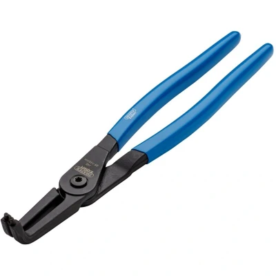 Electrical World• 90° bent tip • Forged from high carbon steel, hardened and tempered • Precision tips manufactured from spring steel for an extra long life • Blacked phosphate finish • Non-slip comfortable dipped PVC handles • Capacity 85-140mmForged from high carbon steel that is hardened and tempered, with a blacked phosphate finish. Precision tips manufactured from spring steel for an extra long life. Non-slip comfortable dipped PVC handles. Capacity 85-140mm. 1 x Draper Expert 90° Internal Circlip Pliers, J41, 305mmTechnical SpecificationCapacity: 85-140mm Length: 215mm Size: J41Technical Specification:Capacity: 85-140mm Length (mm): 215 Product Type: PliersDimensions: Length: 320mm x Height: 36mmWeight: 0.565KgWarranty: Lifetime
