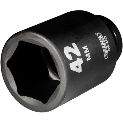 General description This is a high-quality 42mm (3/4 inch) square drive impact socket designed for heavy-duty use. Made from hardened chrome molybdenum steel, it offers durability and strength for demanding applications. The socket features a 6-point design for a secure grip on fasteners, reducing the risk of slipping or rounding edges. It is finished with a black phosphate coating to provide corrosion resistance. Suitable for use with electric or pneumatic impact wrenches, it ensures reliable performance in professional and DIY home improvement projects. Technical specifications Size: 42mm (3/4 inch) Drive Type: Square drive, 3/4 inch Design: 6-point deep impact socket Material: Hardened chrome molybdenum steel Finish: Black phosphate coating for corrosion protection Compatibility and accessories Compatible with electric and pneumatic impact wrenches with a 3/4 inch drive Supplied with a ring and pin for secure attachment Installation Attach the socket to the impact wrench's 3/4 inch