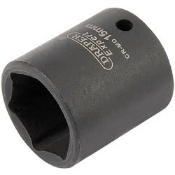 General description This high-quality 15mm metric impact socket is forged from chrome molybdenum steel, offering exceptional durability and strength. The socket is hardened, tempered, and chemically blacked for corrosion resistance, making it suitable for professional and heavy-duty applications. It is designed for use with air, electric, or manual impact wrenches and is display packed for easy storage and organization. Technical specifications Material: Chrome molybdenum steel Finish: Blackened for corrosion protection Number of points: 6-point design Application: Suitable for impact wrenches (air, electric, manual) Compatibility and accessories Compatible with air impact wrenches, electric impact wrenches, and manual impact wrenches Only impact sockets and impact accessories should be used with powered impact wrenches Installation Insert the socket onto the wrench or impact driver Ensure proper fit before applying torque Usage Use with impact wrenches for heavy-duty fastening and
