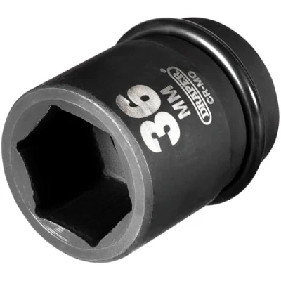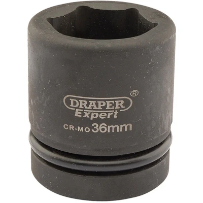 General description This is a high-quality 36mm (1 inch) square drive impact socket designed for use with air, electric, or manual impact wrenches. It is part of the Draper Expert HI-TORQ® series, known for durability and precision. The socket is forged from chrome molybdenum steel, which is hardened, tempered, and chemically blacked to resist corrosion. It is suitable for heavy-duty applications and provides reliable performance. Technical specifications Size: 36mm (1 inch) Drive type: Square drive Number of points: 6-point Material: Chrome molybdenum steel Finish: Blackened for corrosion protection Includes: Pin and ring for secure attachment Compatibility and accessories Compatible with impact wrenches and impact drivers with a 1-inch square drive Supplied with a pin and ring for secure fitting Installation Always use the ring and pin to secure the socket to the impact wrench's output shaft Ensure the socket is properly seated before use to prevent slipping or damage Usage Designed