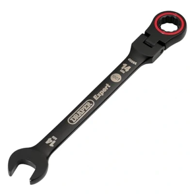 Draper Expert HI TORQ Metric Flexible Head Ratchet Combination Spanner, 14mm, Black