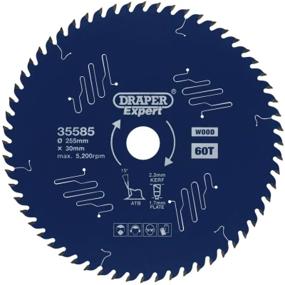 Draper Expert TCT Circular Saw Blade for Wood with PTFE Coating, 255 x 30mm, 60T