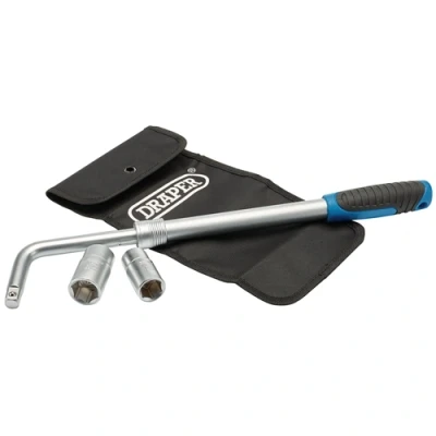 Electrical WorldSupplied with two 1/2" sq. drive reversible sockets size 17 x 19mm and 21 x 23mm, manufactured from chrome vanadium steel. Handle extends to 520mm which helps to increase torque on difficult wheel nuts. With a soft-grip handle for easy comfort. Supplied with storage bag. Display packed.