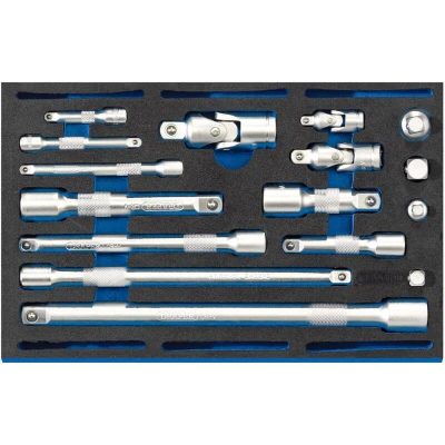 Draper Extension Bar, Universal Joints and Socket Convertor Set 1/4 Drawer EVA Insert Tray (16 Piece)