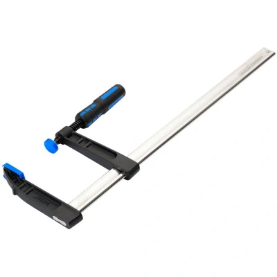General description This F-Clamp is designed for woodworking and DIY projects, providing a secure and adjustable clamping solution. Made from durable carbon steel with nickel-plated jaws, it offers corrosion resistance and reliable performance. The clamp features a quick-adjust handle with a comfort grip, making it easy to operate. Soft plastic jaw guards protect surfaces from damage during use. Technical specifications Maximum clamping force: up to 450kg Maximum opening capacity: 500mm (19.56 inches) Material: Carbon steel frame, malleable cast iron jaws Finish: Nickel plating for corrosion protection Compatibility and accessories Suitable for woodworking, carpentry, and DIY projects Compatible with various workpieces requiring secure clamping Installation Adjust the clamp's jaw opening to fit your workpiece Use the quick adjustment handle to tighten or loosen as needed Ensure the soft jaw guards are in place to prevent surface damage Usage Position the clamp around the workpiece