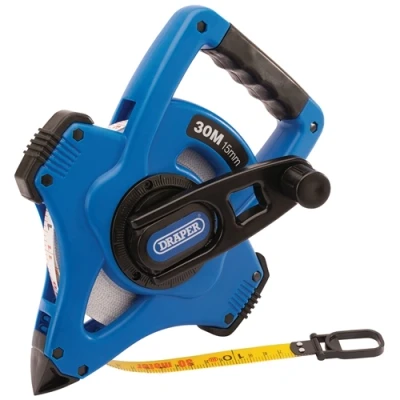 AmazonSurveyors Tapes Fibreglass measuring tape in open reel case fitted with a 4:1 gear ratio handle ensuring a rapid and controlled rewind. The graduations are marked in metric and imperial. Tough polycarbonate case with grab handle. Manufactured to EC Class III accuracy, Manufacturer: Draper