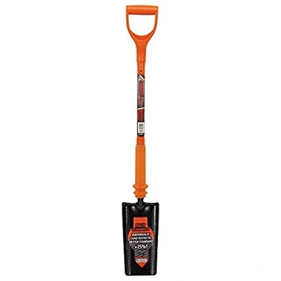 Electrical WorldExpert Quality, fully insulated cable laying shovel designed for working near live cable and wires. Individually tested to 10,000 volts, guaranteeing safe working on 1,000V and complying to the BS 8020 standards. Manufactured with an epoxy fibreglass core and attached to a fully enclosed insulated shaft with hand slip guard. Each shovel is supplied with a certificate of conformity, which correlates with a unique traceability number embossed on the shaft. Sold loose.