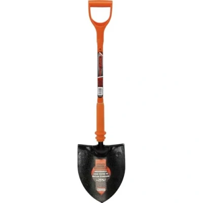 General description This is a fully insulated round mouth shovel designed for safe work near live cables and wires. Manufactured with expert quality standards, it ensures safety and durability. Technical specifications Fully insulated with epoxy fiberglass core Designed for working near live electrical sources Individually tested to withstand 10,000 volts Complies with BS 8020 standards Supplied with a certificate of conformity and a traceability number embossed on the shaft Compatibility and accessories Suitable for use with professional electrical tools and safety equipment Installation No installation required; ready to use out of the box Usage Ideal for electrical work near live wires and cables Ensure proper handling and safety precautions when in use Other information Sold individually