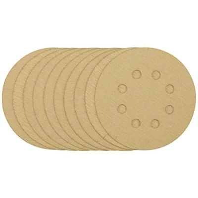 Electrical WorldPack of 10 gold sanding discs made from aluminium oxide with a special treatment of calcium stearate which is resin bonded to provide self-sharpening and anti-clogging performance. The heavy-duty D-Weight backing paper makes the sanding disc more durable - able to withstand the toughest jobs. The hook and loop backing offers decent adhesion to facilitate the fast changing of sanding discs. The eight pre-punched 8mm holes improve the dust extraction during sanding. Ideal for sanding and finishing wood, metals - including ferrous alloys, painted surfaces, varnish, plastic and fillers. Compatible with all 125mm random orbit sanders with a hook and loop backing pad, including Draper Stock No. 58097 and 89522.