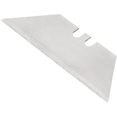 ManoManoPack of 10 general purpose heavy-duty trimming knife blades. Made from high carbon steel and suitable for trade use. Double-notched trapezoid blades. Blade thickness 0.6mm. Supplied inside a sturdy shatter resistant plastic case.