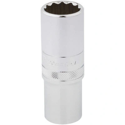 General description This 1/2" drive metric deep socket is made from high-quality chrome vanadium steel, ensuring durability and strength. It features a polished chrome finish for corrosion resistance and a knurled ring for a secure grip during use. Designed for deep socket applications, it allows access to recessed nuts and bolts, making it ideal for various DIY and home improvement tasks. Technical specifications Size: 20mm Drive size: 1/2 inch Type: Deep socket Material: Chrome vanadium steel Finish: Polished chrome Manufactured according to DIN3122 and ISO3315 standards Compatibility and accessories Compatible with 1/2" drive ratchets and extension bars Suitable for use with various socket wrenches and power tools designed for 1/2" drive Installation Attach the socket securely onto a compatible ratchet or extension bar Ensure the socket is properly seated before applying torque Usage Use for tightening or loosening nuts and bolts in deep recessed areas Ideal for automotive,